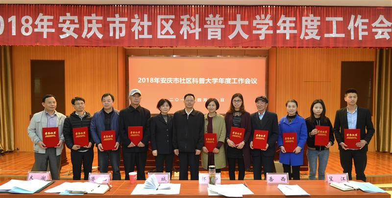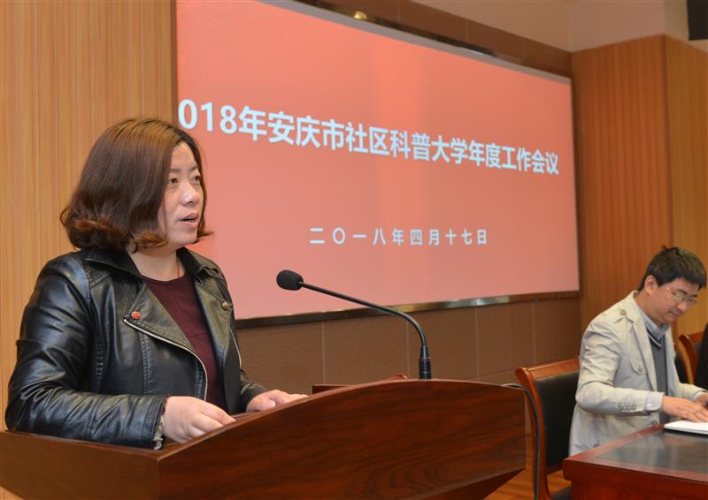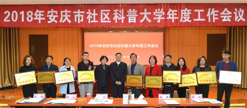 会议对2017年社区科普大学工作进行了认真总结和回顾;表彰了2017年安庆市社区科普大学优秀教学点10个,优秀教师18位,优秀学员23位;大观区花亭北村书记王玉丽、太湖县青少年校外活动中心王佩平、迎江区先锋社区王文霞分别代表优秀教学点、优秀教师和优秀学员作交流发言;部署安排了2018年总体工作。