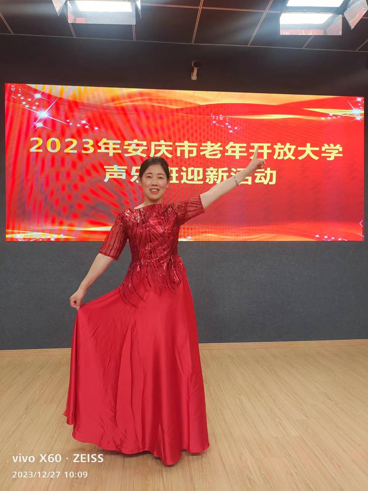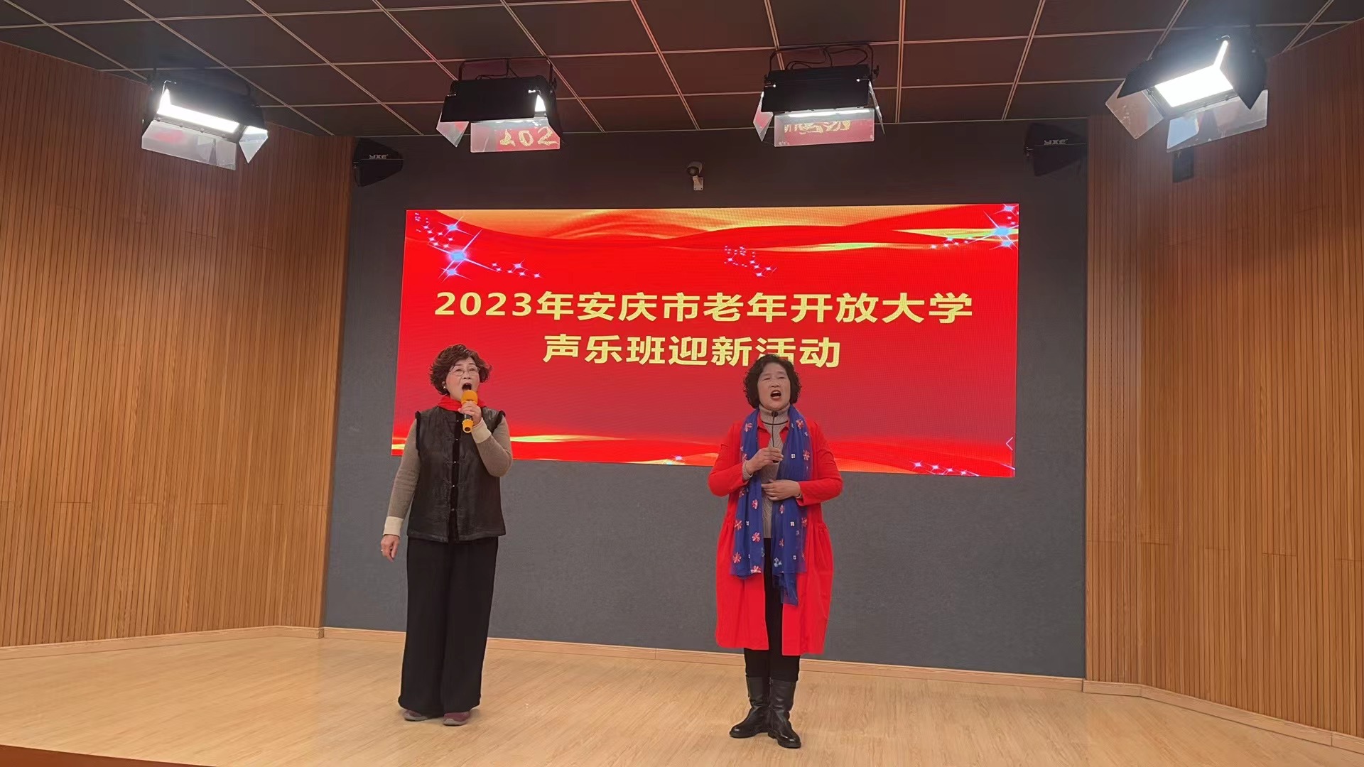 2023年12月27日上午9时,伴随着一首由声乐班两位学员深情演唱的《洪湖水浪打浪》歌曲,安庆市老年开放大学声乐班迎新活动正式开启。