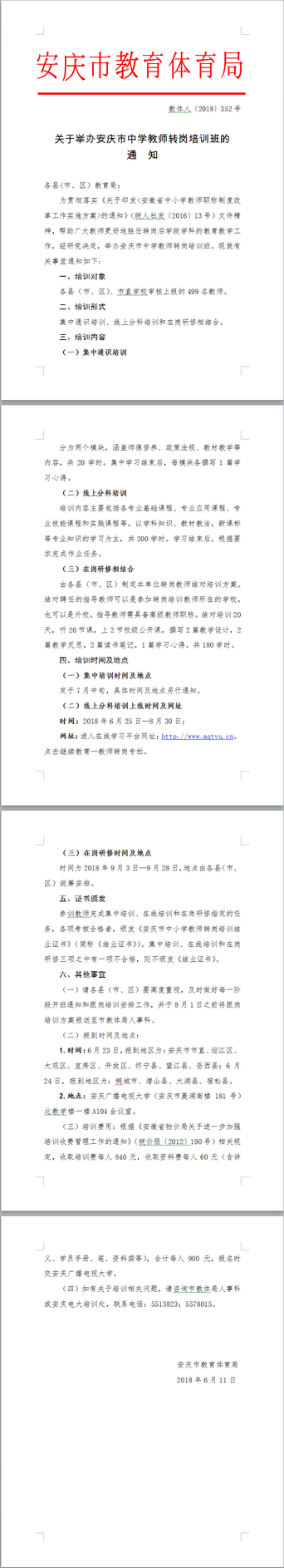 关于举办安庆市2018年教师转岗培训班通知.docx