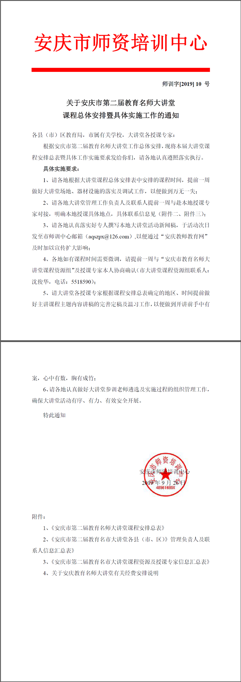 安庆市第二届教育名师大讲堂课程总体安排暨具体实施工作的通知