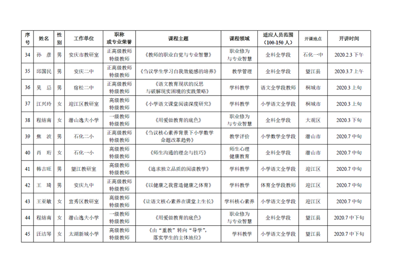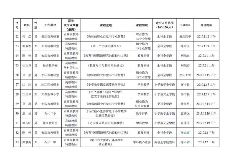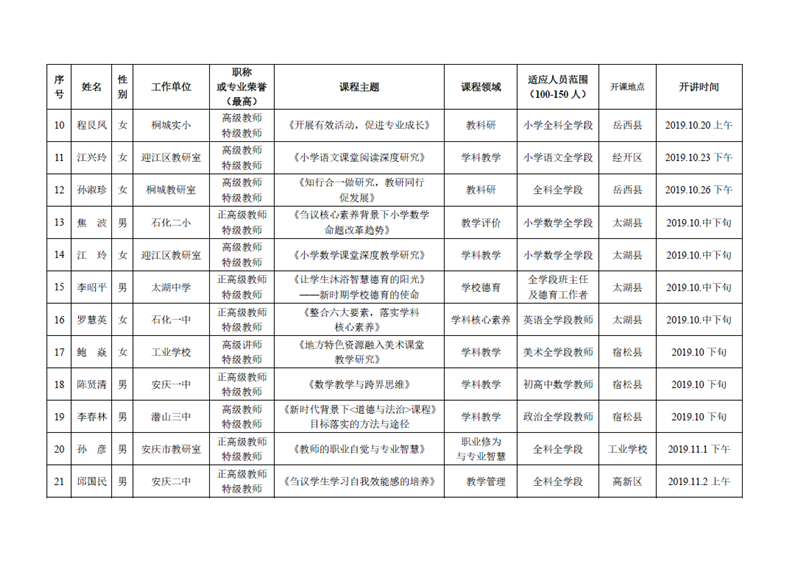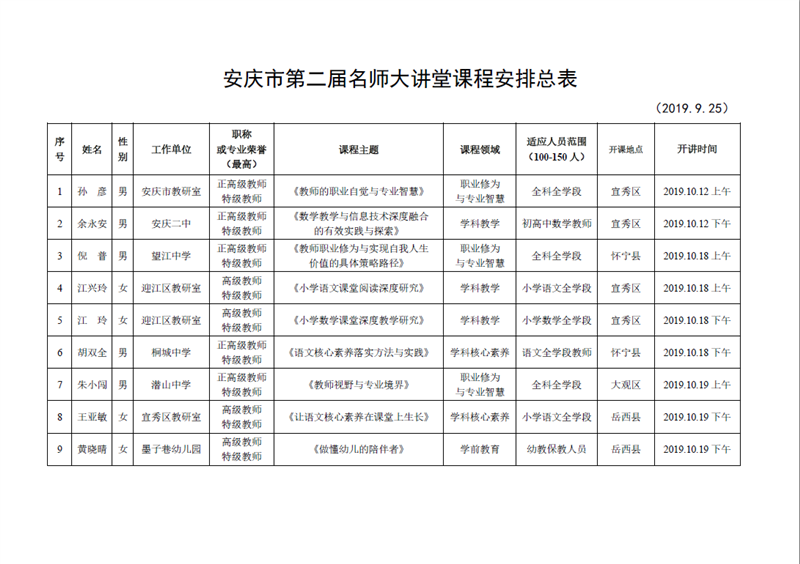 安庆市第二届名师大讲堂日程一览