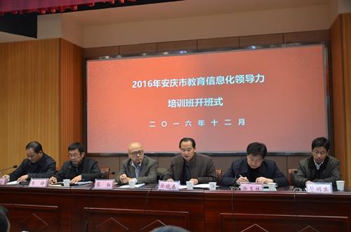 12月21日到26日,由市教体局举办、我校承办的2016年安庆市教育信息化领导力培训班开班上课。中央电教馆副馆长蔡耘,安徽省电教馆常务副馆长李锋,市教体工委书记、教体局局长徐晓春,校党委书记、校长毕明生出席开班仪式,来自各县(市区)教育局分管局长、市直学校校长以及各县(市区)教育信息化工作成效较好的学校校长,共45人参加了培训。开班仪式由市教体局副局长张连富主持。