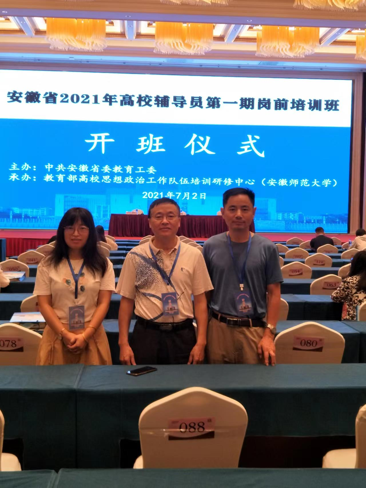 2021年7月2日至7日,由中共安徽省委教育工委主办、教育部高校思想政治工作队伍培训研修中心(安徽师范大学)承办的安徽省2021年高校辅导员岗前培训(第一期)在芜湖海螺国际会议中心举办。我校江三洁、龙贵才、高艳三名辅导员与来自全省各高校的128名辅导员共同参与了本次培训活动