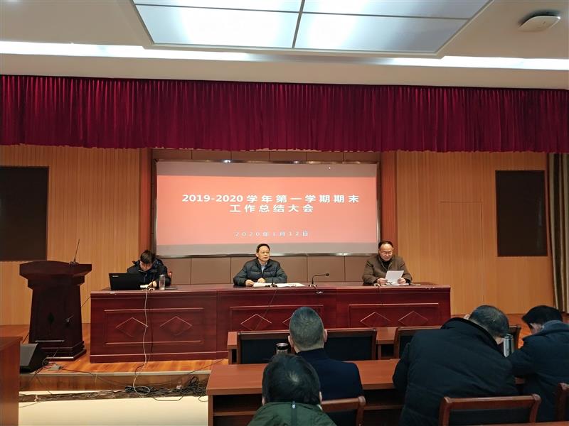 2020年元月12日上午,我校在C栋205会议室召开期末工作总结暨师德师风建设大会。校党委书记、校长吴雪恩,党委委员、副校长周光纯,党委委员、副校长王佩捷出席会议。会议由党委委员、副校长周光纯主持。