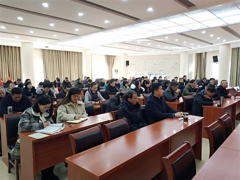 吴雪恩作学期工作总结,回顾2019年,他从六个方面为本学期全体教职工的辛勤付出“点赞”:1.党建工作上台阶;2.治理体系趋完善;3.教科研成绩不俗;4.平安校园建设显成效;5.办学“质”和“量”获提升;6.多元办学结硕果。展望2020年,吴雪恩要求继续以“平安、文明、和谐、品质”为目标,在教体工委和省电大的关心和支持下,继续抓好学历教育招生、拓宽办学渠道、规范办学行为、提升治理能力,做到化挑战为机遇,依法治校、科学谋划2020年各项工作。