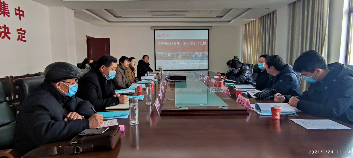 1月24日,安徽老年开放大学、安徽省老年大学协会一行到芭茅巷社区老年开放大学开展2020年全省老年远程教育共建教学点考评工作。市老干局副局长李大进、安庆广播电视大学副校长王佩捷陪同调研。