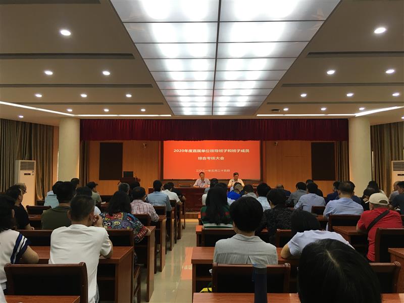 5月25日下午,以市教体工委委员、市纪委监委驻教体局纪检监察组组长邱金生为带队领导的教体工委考核组一行来我校开展2020年度学校领导班子及班子成员综合考核工作。我校在C栋二楼报告厅召开了2020年度综合考核工作会议,校党委书记、校长吴雪恩主持会议,学校领导班子和全体教职工参加了会议。