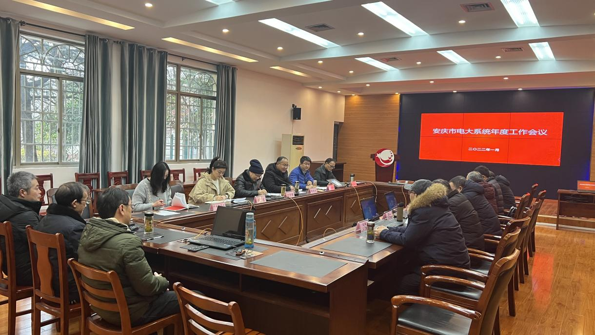 为做好2022年春季招生及本学期期末考试等工作,安庆电大于1月7日上午召开全市电大系统年度工作会议,安庆电大党委委员、副校长周光纯、许迪楼、王佩捷及各县站负责人、开放教育处、办公室、教务处等相关工作人员一同参会。
