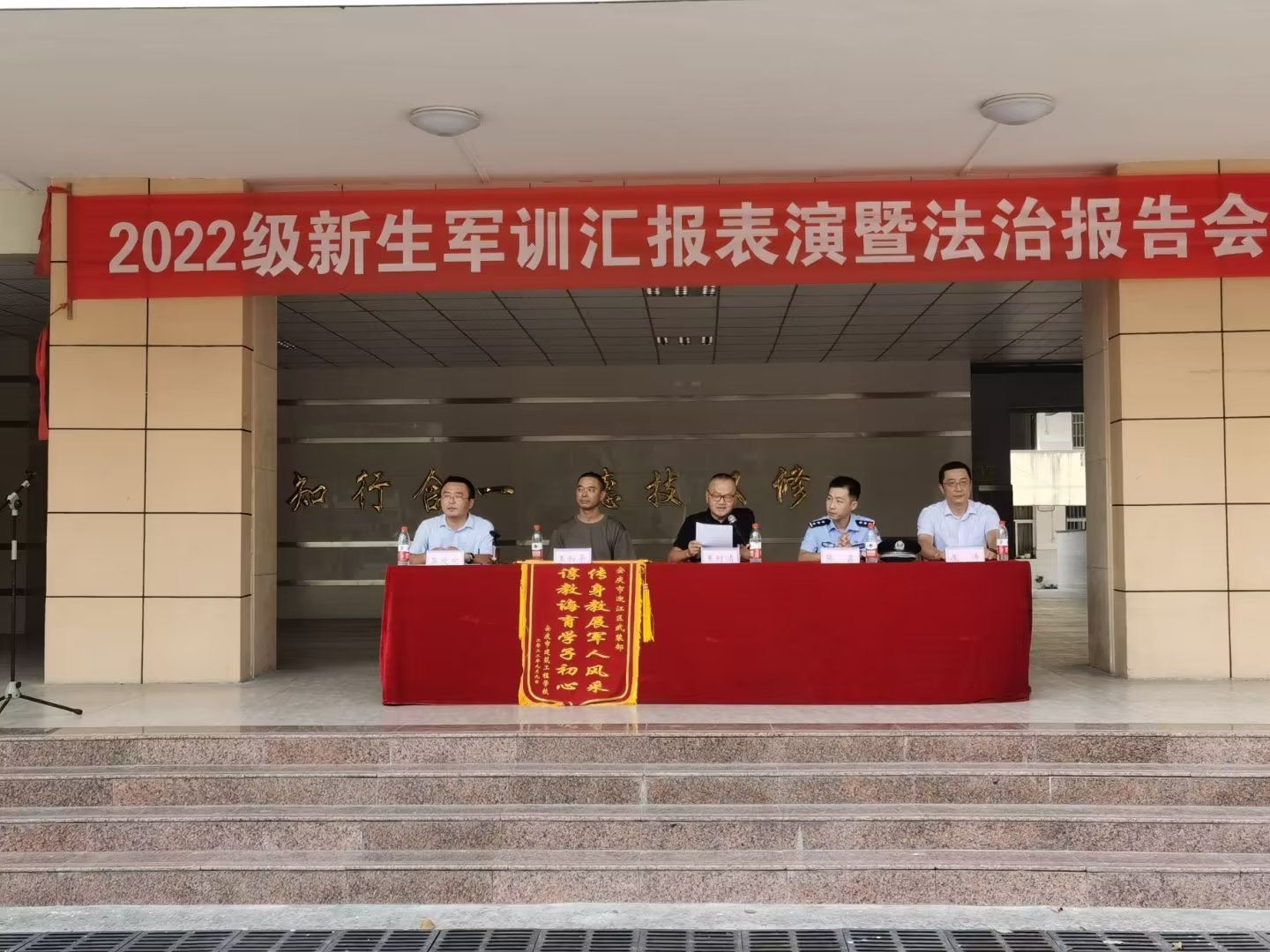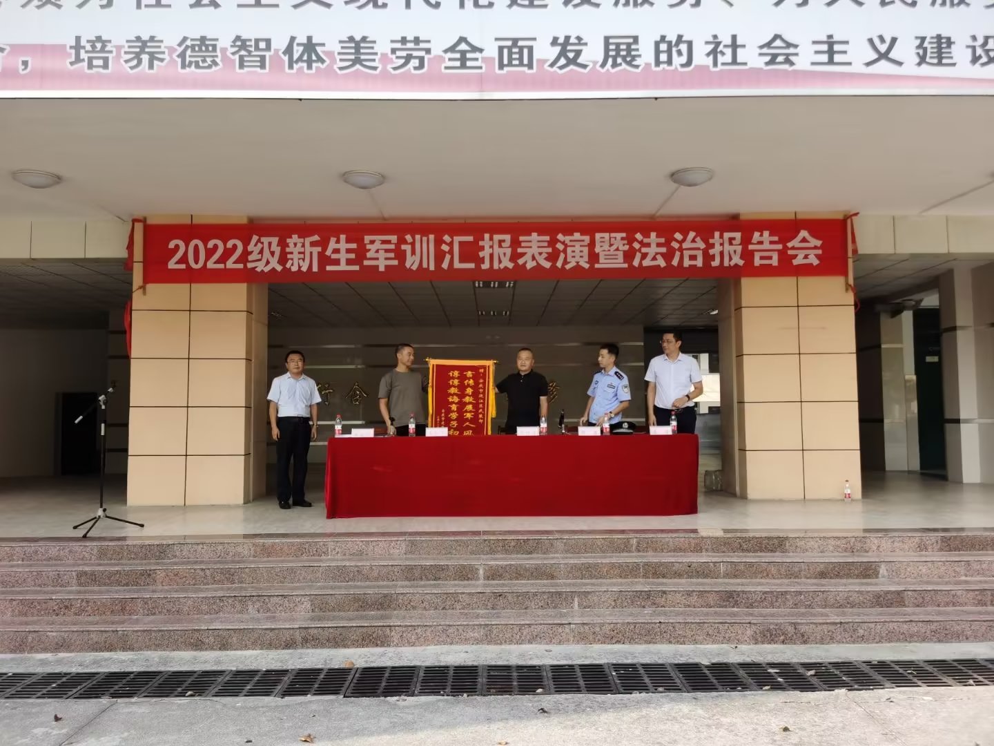 最后,校党委委员、副校长王付清同志向人武部赠送了“言传身教展军人风姿,谆谆教诲育学子初心”的锦旗,向军训中辛勤付出的各位教官和工作人员表示感谢。并希望参训新生牢固树立“祖国安危、人人有责”的爱国主义思想,注重学习、努力拼搏,为将来建设祖国保卫国家奠定坚实基础。要深刻认识到身体健康和意志坚定的重要性,多参加体育锻炼,努力做一名意志坚定的学生。要把军训期间严于律己、团结互助的优良作风带到今后学习生活中去,牢记自己立志成才、立德成人的理想抱负,张开双臂迎接充满挑战的明天。