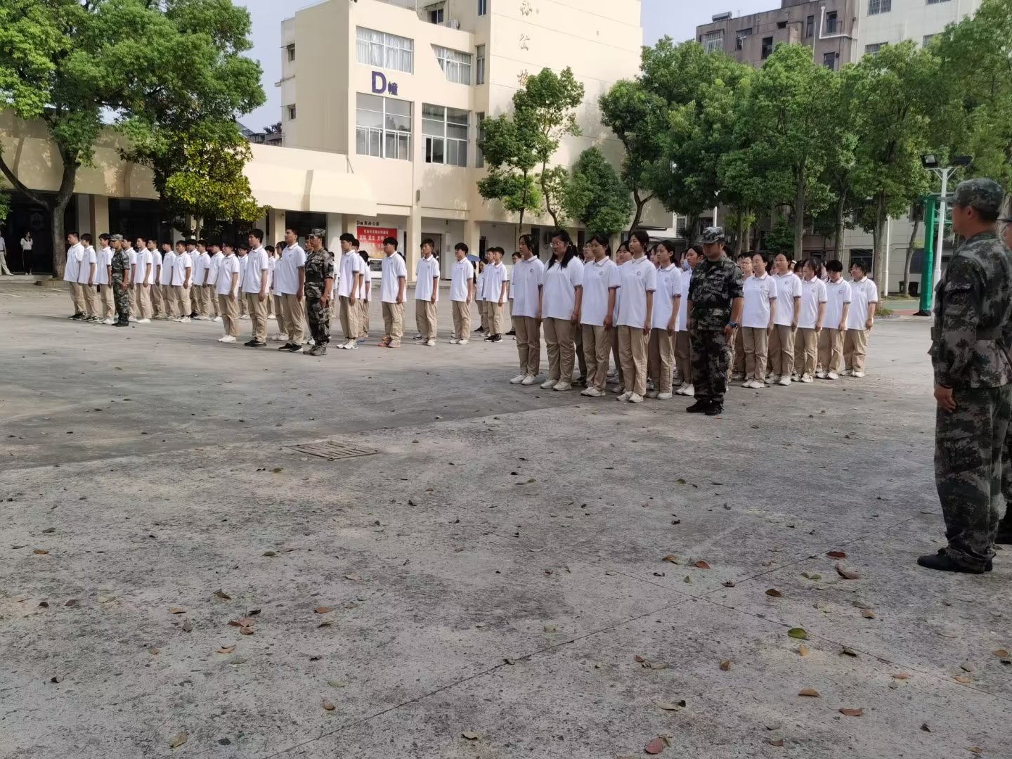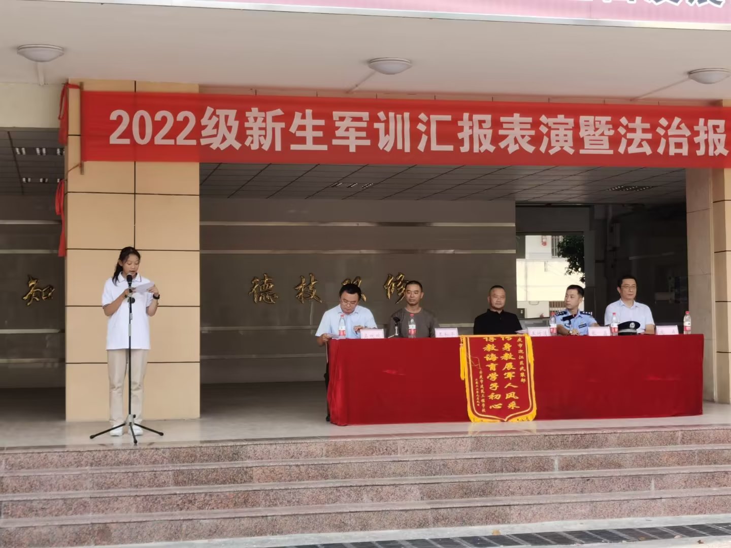 在为期5天的紧张训练中,虽然天气炎热,但一年级新生在教官和班主任的带领下,不怕苦、不怕累,克服了种种困难,不仅圆满完成了预定科目的学习和训练,取得了可喜成绩,还进行了内务整理及体能强化训练。随着响彻云霄的“一、二、三、四”口号声,依次跑步来到主席台前,接受校领导及广大师生的检阅。响亮的口号、标准的动作、整齐的步伐,充分展现了我校2022级新生朝气蓬勃、奋发向上、不畏困难的精神风貌,精彩的表演不时赢得热烈的掌声。