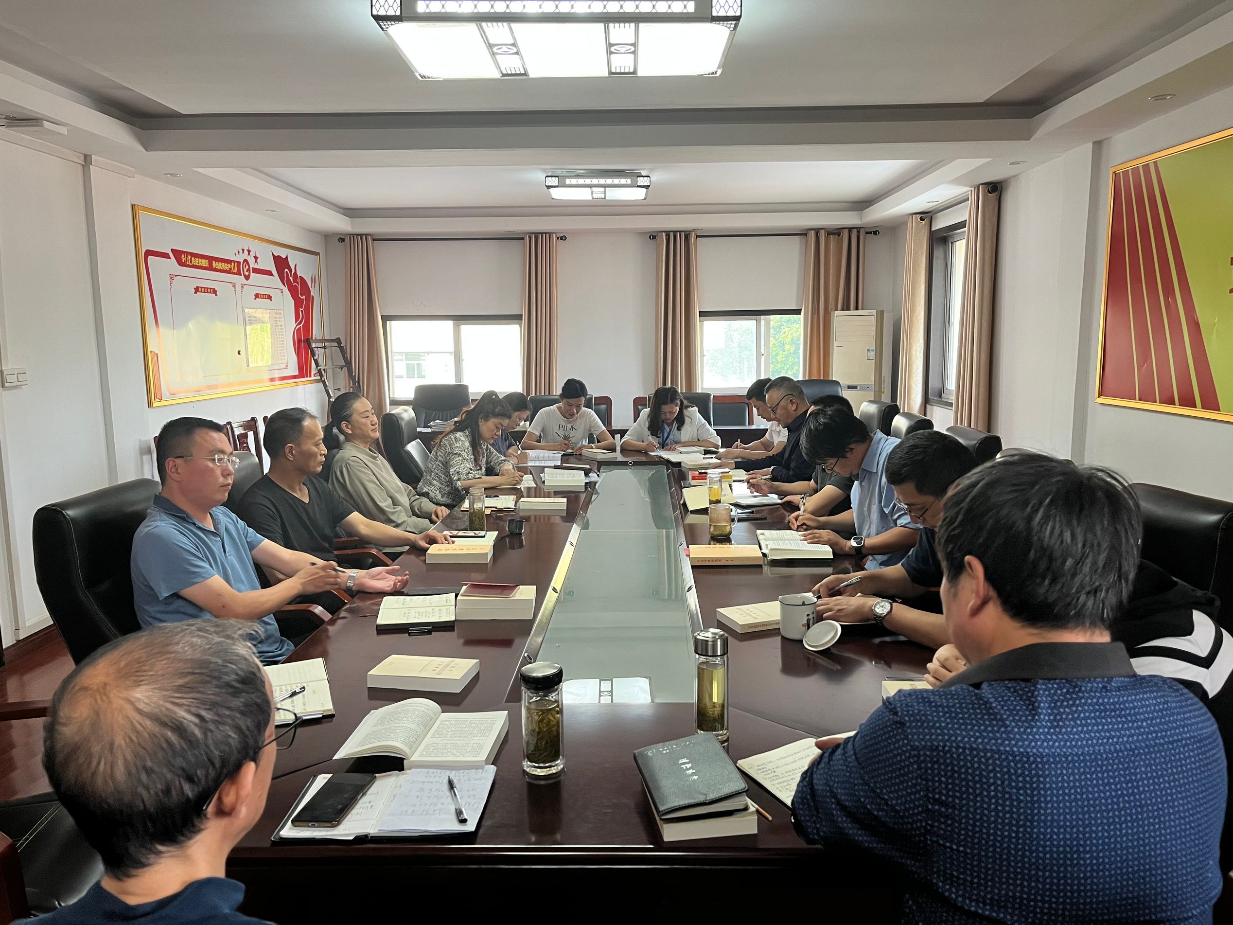 2023年10月19日下午,学校党委理论学习中心组(扩大)在党员活动室开展主题教育集中学习研讨。校党委书记、校长曹劲松主持学习。党委委员、副校长王佩捷、王付清和全体中层干部参加学习。