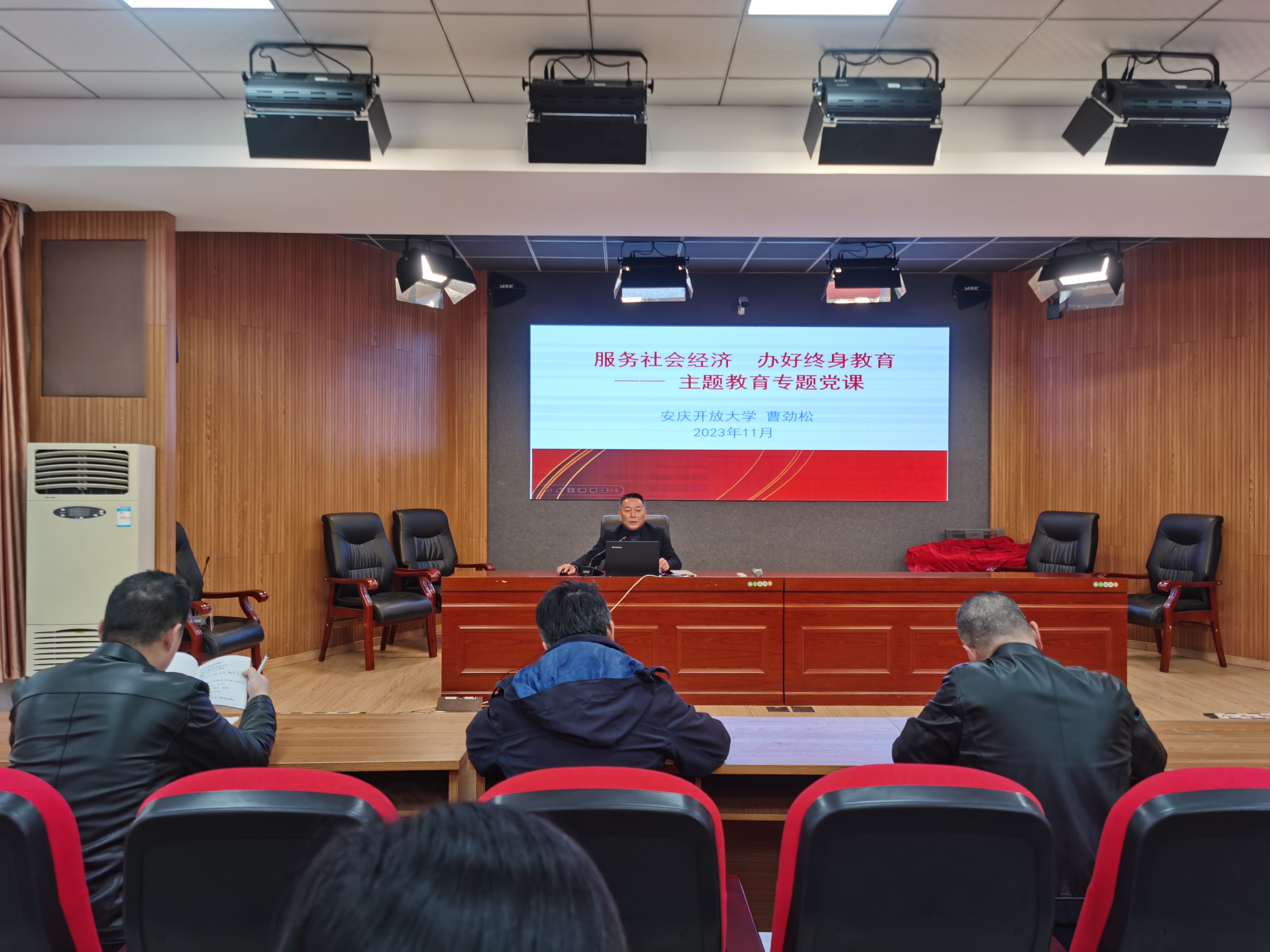 曹劲松以“服务社会经济,办好终身教育”为题,从“坚定信念,铸就忠诚;永葆初心,矢志不渝;艰苦奋斗,开拓创新”三个方面为大家讲授主题教育专题党课。党课紧扣“以学铸魂、以学增智、以学正风、以学促干”目标要求,把“学思想”作为第一位的任务和贯穿始终的主线。他强调,全体教师要认真学习贯彻落实习近平新时代中国特色社会主义思想,落实习近平总书记对教师队伍师德师风建设的要求与期望,牢固树立“四个意识”、坚定“四个自信”、自觉做到“两个维护”;要提升思维能力,善于把握事物本质、把握发展规律、把握工作关键,着力建设终身学习公共服务平台,面向全民提供终身教育及服务;要勇挑重担,在哪个岗位就把哪个岗位的事情干好,履行什么职责就把这个职责坚决完成好,以艰苦奋斗、顽强拼搏的作风,破解学校发展难题。
