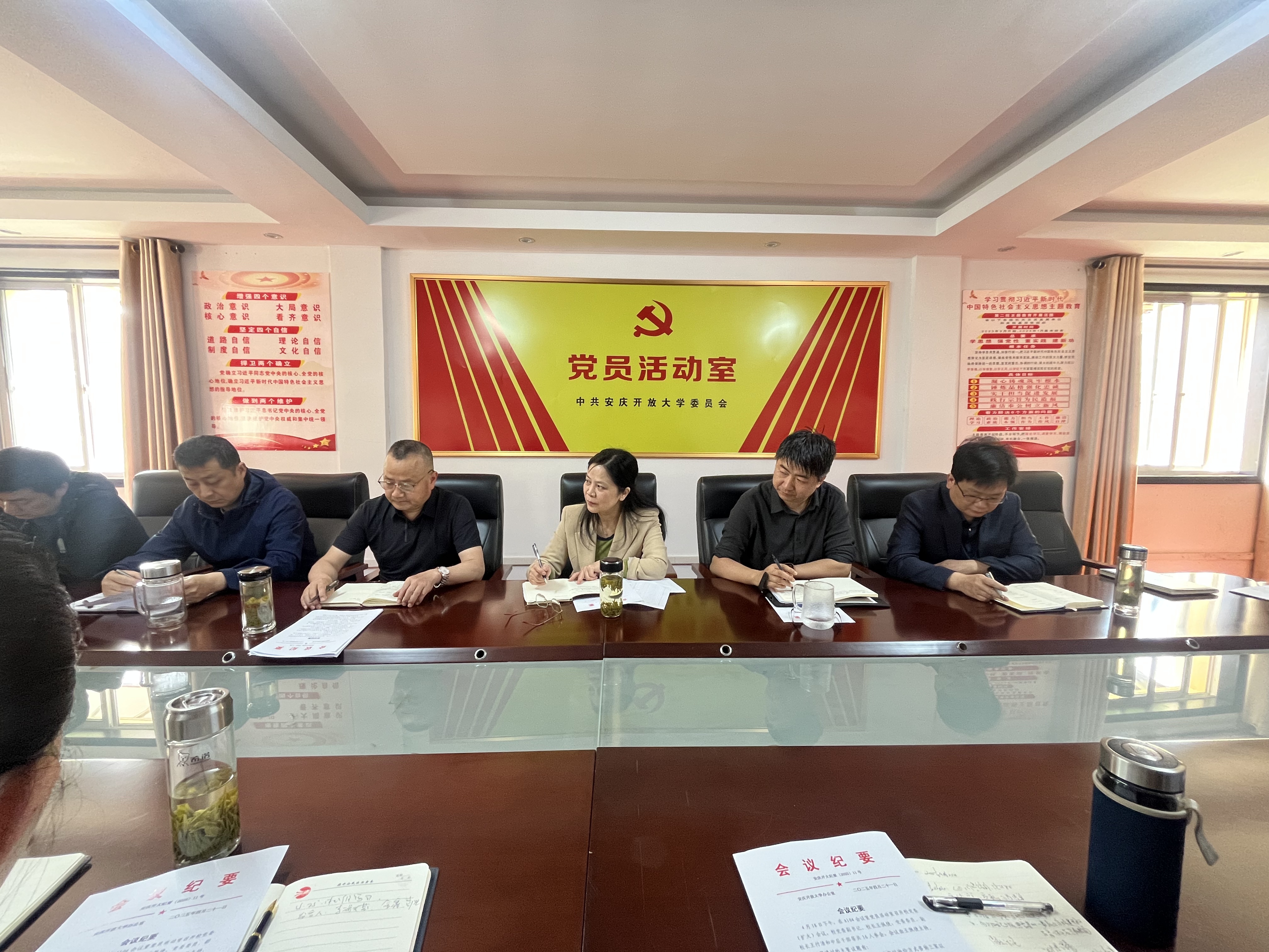 4月25日上午,我校在三楼党员活动室召开党委理论学习中心组(扩大)会议,集体学习习近平总书记在二十届中央纪委四次全会上的重要讲话精神、中共中央政治局关于改进工作作风以及密切联系群众的八项规定,以及《习近平关于加强党的作风建设论述摘编》。党委书记陈庆玲主持会议,党委副书记、校长王佩捷,党委委员、副校长王付清及中层干部参加学习。