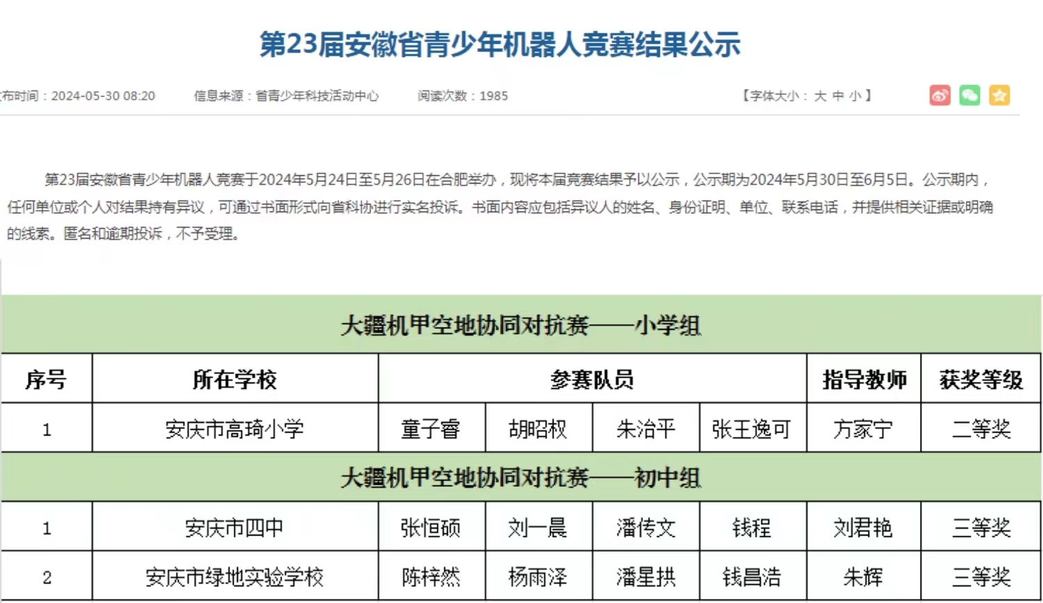 我校指导的机甲空地协同赛在安徽省第23届青少年机器人竞赛中荣获佳绩