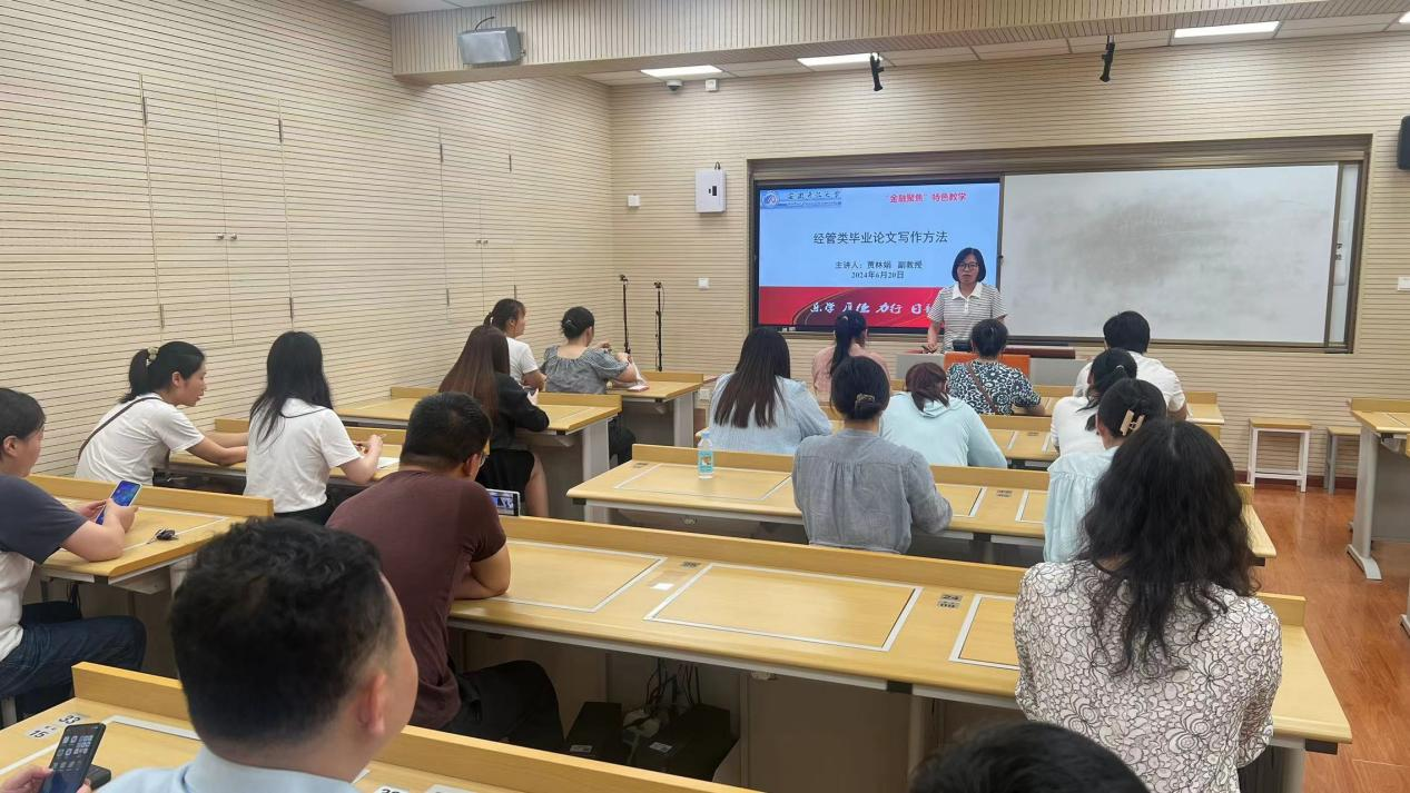 安徽开放大学贾林娟博士和王璐教授分别通过专题讲座,向应届学员们介绍了毕业论文写作的相关流程、规范和具体要求,并结合实际为学员们系统梳理了省校经管学院各专业的人才培养模式和就业前景,让学员们在互动交流中更直观感受到学以致用的重要性。
