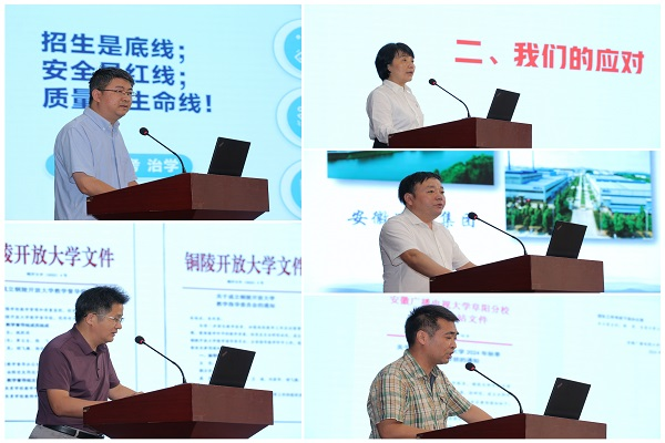 我校近年来积极拓展体系化办学思路,并做出多方面创新和尝试,坚持抓“质”和谋“量”双管齐下,在招生和教学管理等方面都取得了成效。市分校获安徽开放大学2023年度“先进办学单位”、“招生万人比排名”两项集体荣誉,校党委书记、校长曹劲松获安徽开放大学2023年“项目招生奖”,李玲获“招生工作优秀个人”;体系内潜山开放大学获“招生工作先进集体”、怀宁开放大学校长吴和晓获“招生工作优秀个人”。王佩捷代表安庆开放大学在会上作了交流,分享了安庆开放大学“招生是底线;安全是红线;质量是生命线”的办学经验。