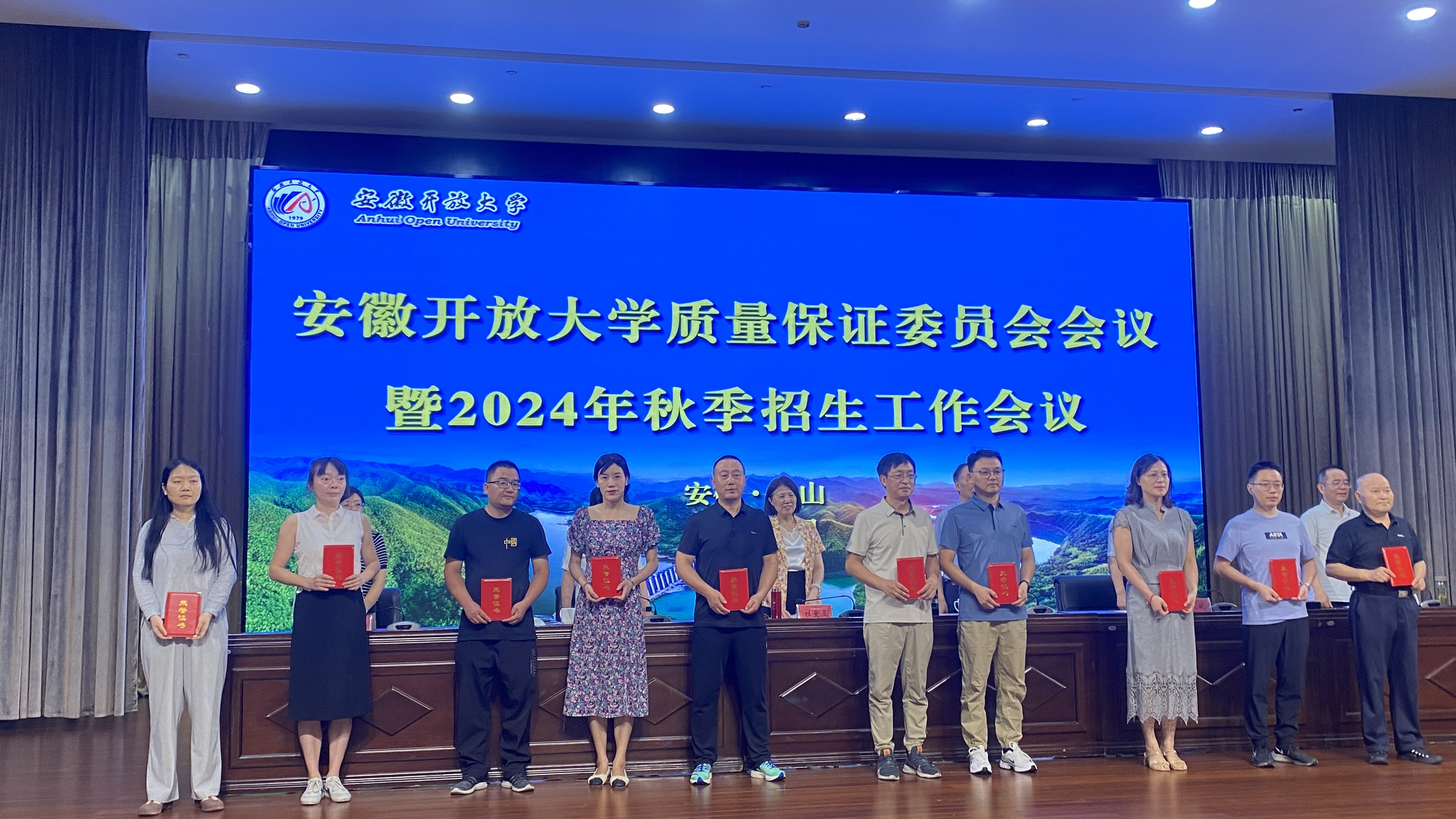 2024年7月23日,安徽开放大学质量保证委员会暨2024年秋季招生工作会议在霍山召开。安徽开放大学党委书记、杜爱玉,党委委员、纪委书记、监察专员王道和,党委委员、副校长孙枝娟、诸咸斌,霍山县委常委、宣传部部长朱静等出席会议。我校党委委员、副校长王佩捷带领教务处、开放教育学院相关业务负责同志一行四人参会。