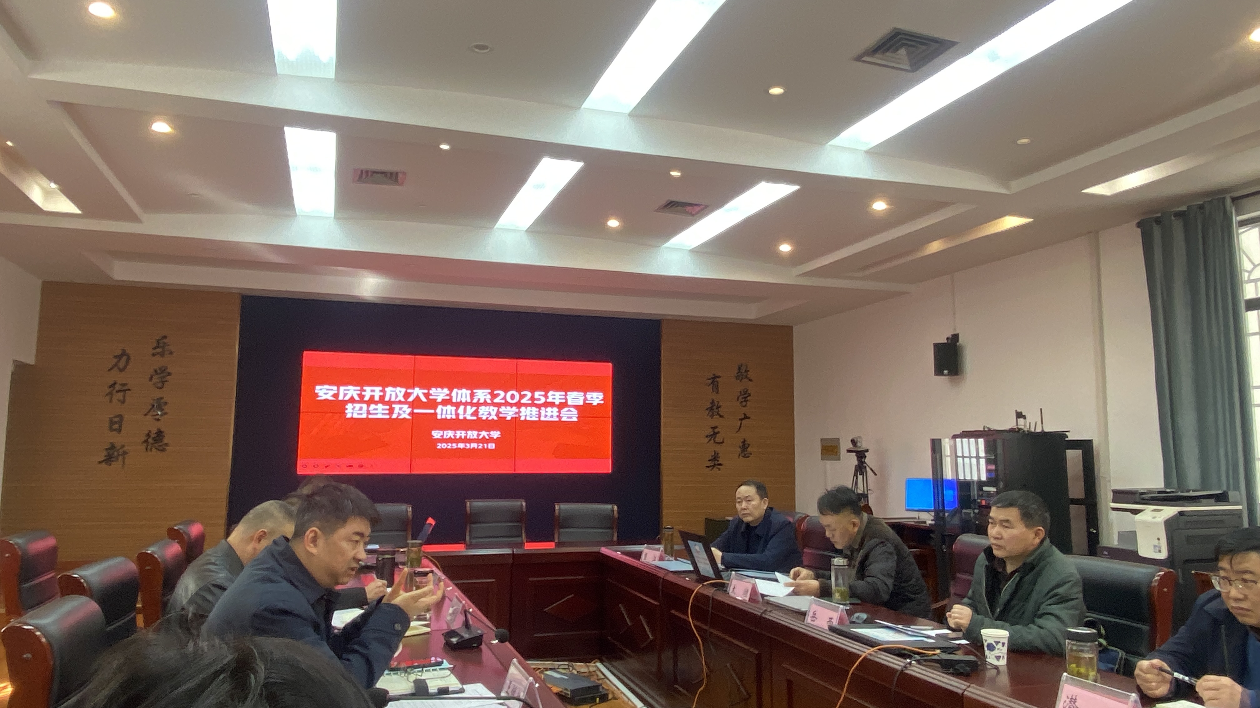 为积极响应安徽开放大学关于加强体系协同、推动开放教育高质量发展的要求,共商招生攻坚策略、共谋教学高质量发展路径,我校于3月21日召开春季招生及一体化教学工作推进会,会议由校党委副书记、校长王佩捷主持,校党委委员、副校长王付清及各县(市)开大主要负责人、校相关职能部负责人参加会议。