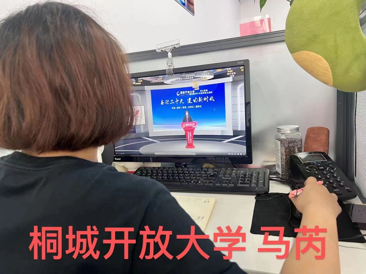 8月29日上午10点,我校组织开放教育师生收看国家开放大学党委委员、副校长范贤睿主讲的“开学第一课:喜迎二十大,建功新时代”,与全国国开师生一起,参加本学期线上开学仪式。桐城开放大学马芮表示“作为新时代的年轻人,我们感受到新时代的中国跨越到一个新的台阶,这是一个接力赛,一代人又一代的人总结前人经验,为下一个阶段大力推进。”教职工也表示要立足岗位,争创“让学生有归属感、获得感、幸福感”的育人环境,实现立德树人根本任务。