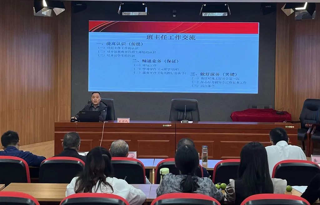 培训会由市开放大学副校长王佩捷主持。教务处负责同志紧紧围绕如何当好新时代开放教育班主任这一核心问题,对开放大学班主任工作流程、国开平台操作常见问题、毕业实践环节步骤及课程计划等内容进行了详细的解读。随后,两位来自一线的优秀班主任进行了经验分享,他们认为,班主任是开放大学的形象代言人,是学生学习管理者、引路人,要当好学生的好朋友、服务员;当好班主任首先要精通业务,熟悉职责,认真做事、用心服务,认真能做对事,用心能办好事。