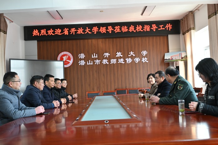 2025年1月16日,安徽开放大学党委委员、副校长诸咸斌、李秀华主任、焦洁主任一行三人来我校调研指导工作。潜山市教育局党委委员、招生办主任储成杰,潜山开放大学负责人陪同调研。