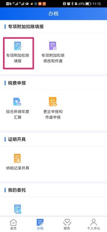 1. 点击“专项附加扣除填报”。
