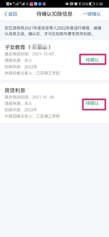 3.进入待确认扣除信息页面,如有修改点击“待确认”,可修改已有的附加扣除信息。
