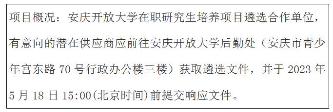 项目名称:安庆开放大学在职研究生培养项目合作单位遴选