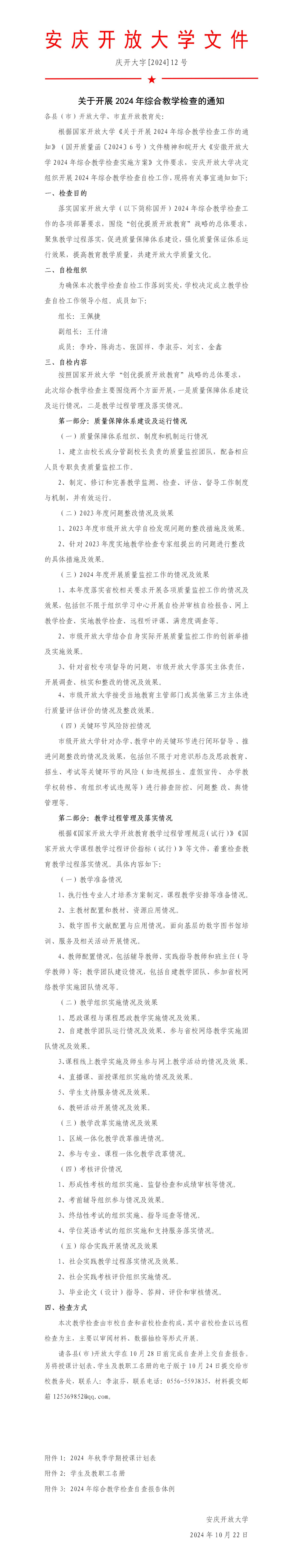 关于开展2024年综合教学检查的通知