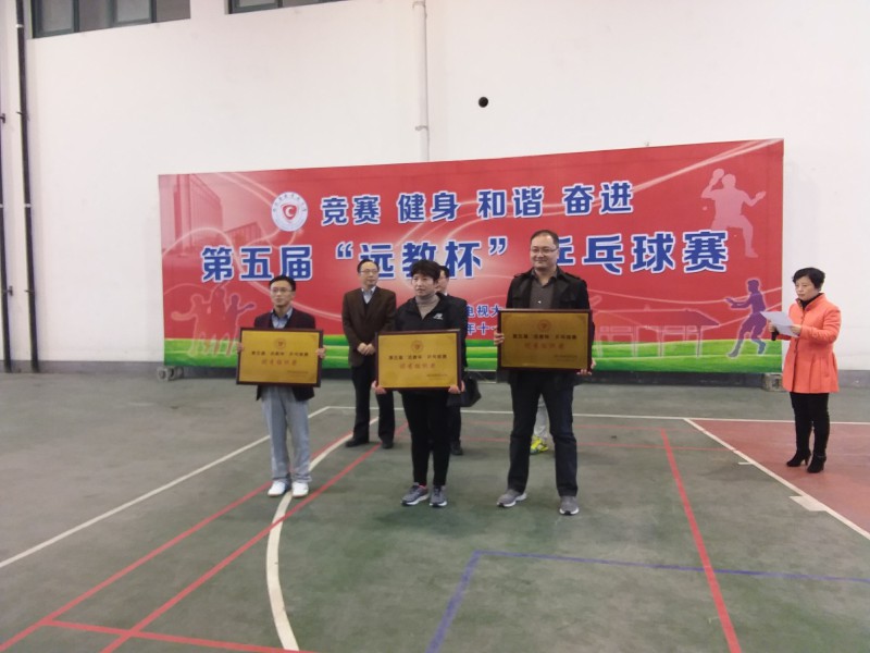 “远教杯”乒乓球比赛近年来已成安徽电大系统传统赛事,每两年一届。参赛运动员在两天的时间里,切磋球技,交流经验,畅谈友谊,气氛热烈。我校运动员在本次比赛上团结协作,顽强拼搏,赛出了应有的水平,表现出了良好的精神风貌,获得了组委会的肯定,王友星同志被评为优秀运动员,学校也荣获“优秀组织奖”。