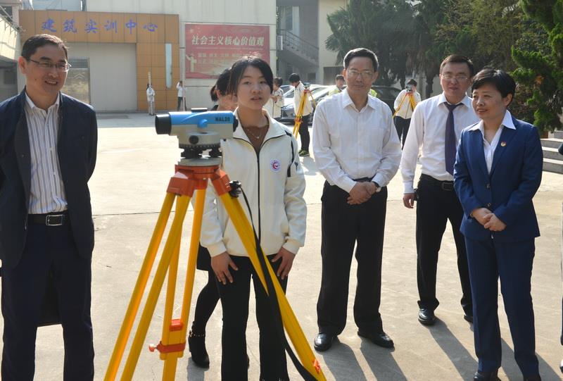 校党委书记、校长吴雪恩向张敏书记详细介绍了安庆市建筑工程学校共青团改革和基层团组织规范化建设、团的活动开展以及志愿者活动、社团的管理等情况。张敏书记还观摩了我校建筑测量社团的测量训练。她走到学生中间,就社团训练和专业学习与学生进行了亲切的交流。