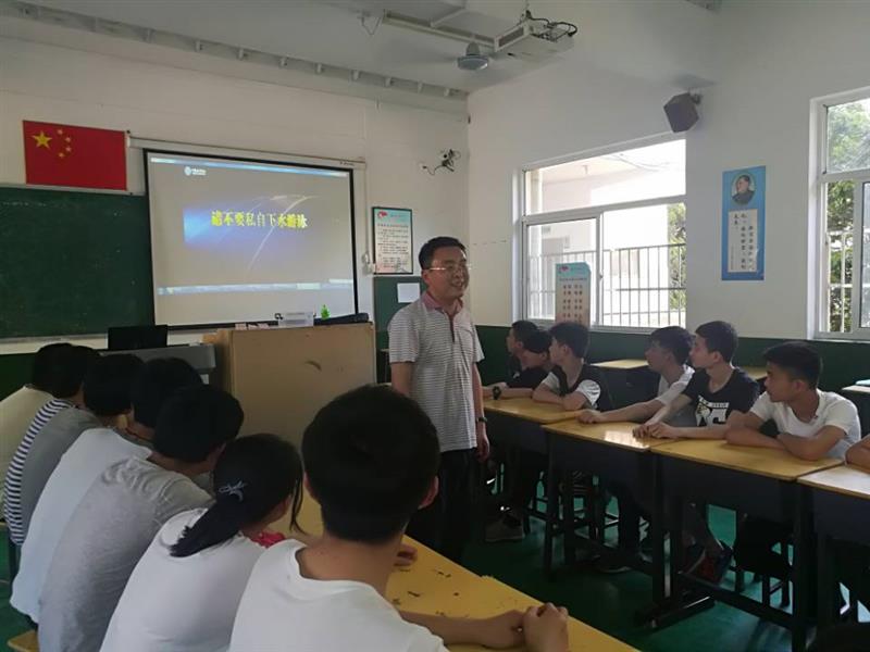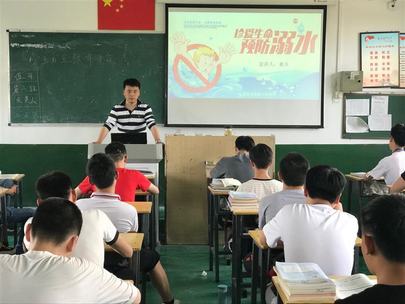 为确保防溺水主题教育活动取得实效,在活动开展之前,职教处召开专题会议讲行了安排布置,职成教育处主要负责人程学刚带头深入班级进行了宣讲。