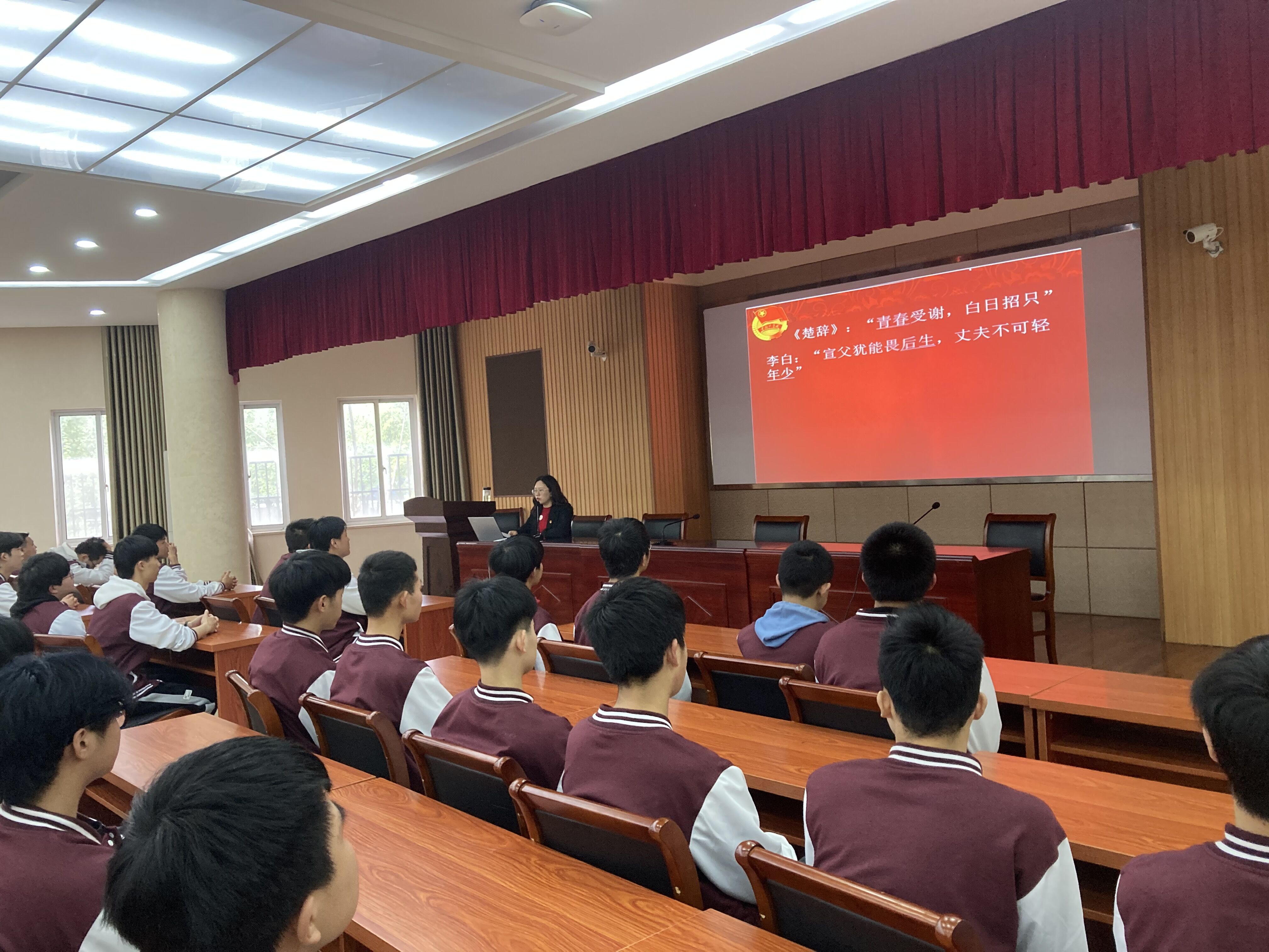 张书记以“共青团的光辉历史通过学习团史、团章做合格共青团员为主题,通过讲述共青团的重要历史事件和历史会议让同学们进一步了解共青团的发展,带领同学们认识了团旗、团徽、团歌和团员证,详细讲解了它们的象征意义和内涵,强调同学们要努力提升个人的学习能力,加强思想道德修养。
