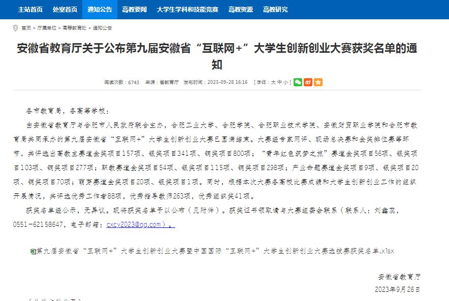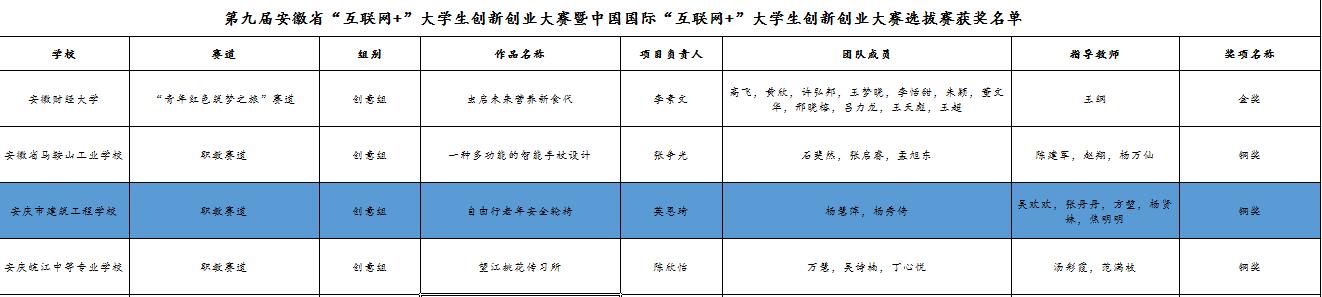 喜报!我校学子在第九届安徽省“互联网+”大学生创新创业大赛中荣获佳绩