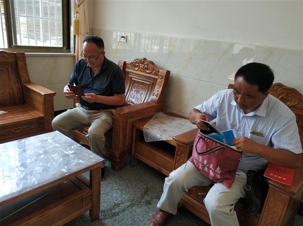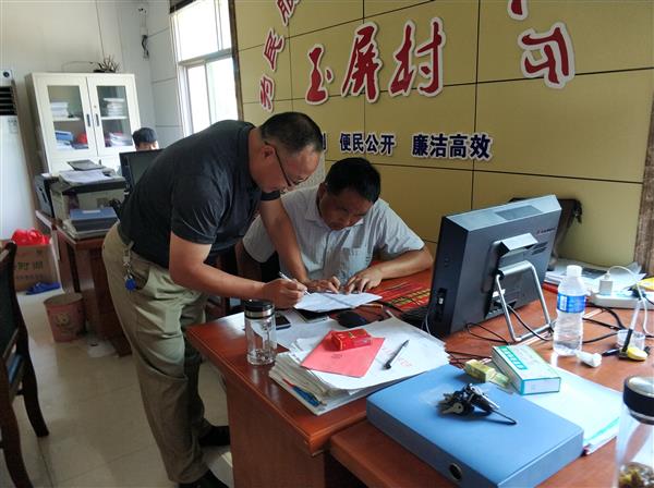 帮扶小组到达村里的时候,恰逢村里停电,炎炎酷暑,周光纯副校长一行就在村委办公室向刚上任的村委副书记虞向前以及村主任蒋云龙询问了前期玉屏村15千瓦太阳能光伏发电、村办卫生室筹建、蒋山文化广场建设等扶贫工程建设进展情况。虞向前副书记介绍:蒋山文化广场建设已经竣工,广场的体育健身器材和路灯正在招标,村办卫生室也已经开工建设,近期村里还将筹措资金对因大雨而冲毁的公路进行抢修,保障村民的出行。