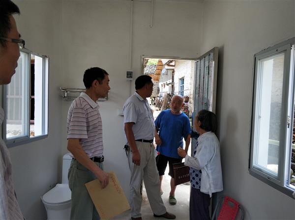帮扶小组成员在村委办公室查看了15户帮扶对象的帮扶记录,完善了帮扶手册的内容,并到许艮秀等7户帮扶贫困户家实地走访,了解他们近期的家庭生活情况,还参观了村里为许艮秀和虞姣莲两位五保户老人盖的新居。