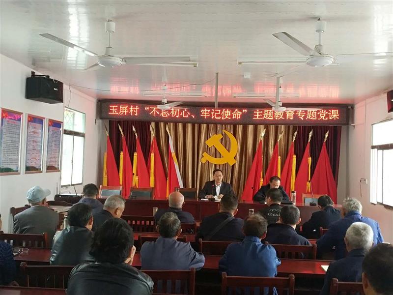 校党委书记、校长吴雪恩为村两委及村党员上了一堂“不忘初心,牢记使命”主题教育专题党课,教育和引导广大党员干部“守初心、践使命”,牢固树立“四个意识”,带头坚定“四个自信”,发挥好基层组织、党员干部在脱贫攻坚中的战斗堡垒作用和先锋模范作用,不断提高脱贫质量, 切实巩固脱贫成效。