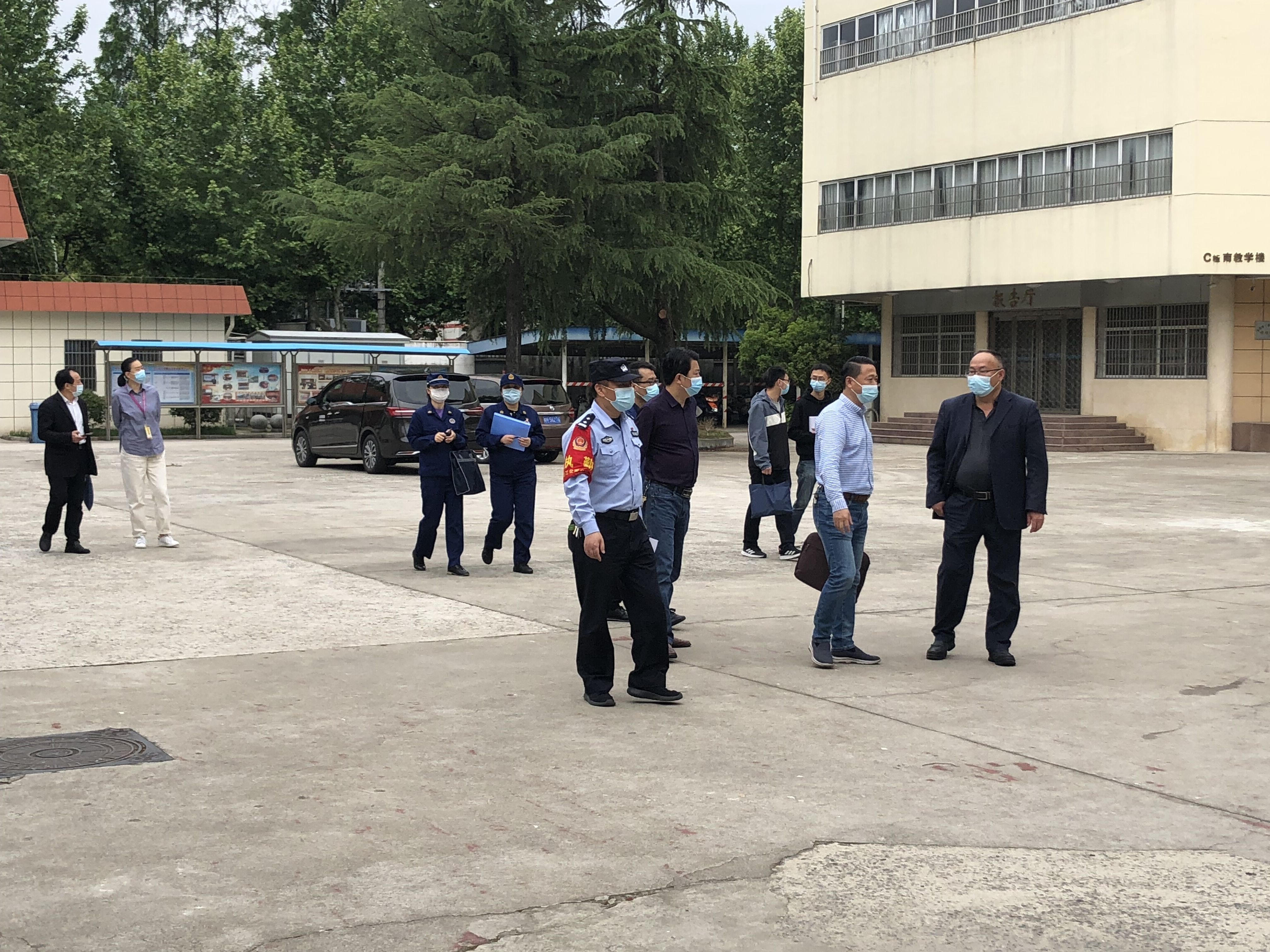 4月28日上午,由教体局牵头,公安、卫健、市场、城管、文旅、消防等部门组成的迎江区校园安全专项督查组到我校督导检查校园安全工作。校党委委员、副校长周光纯和相关部门负责人陪同检查。