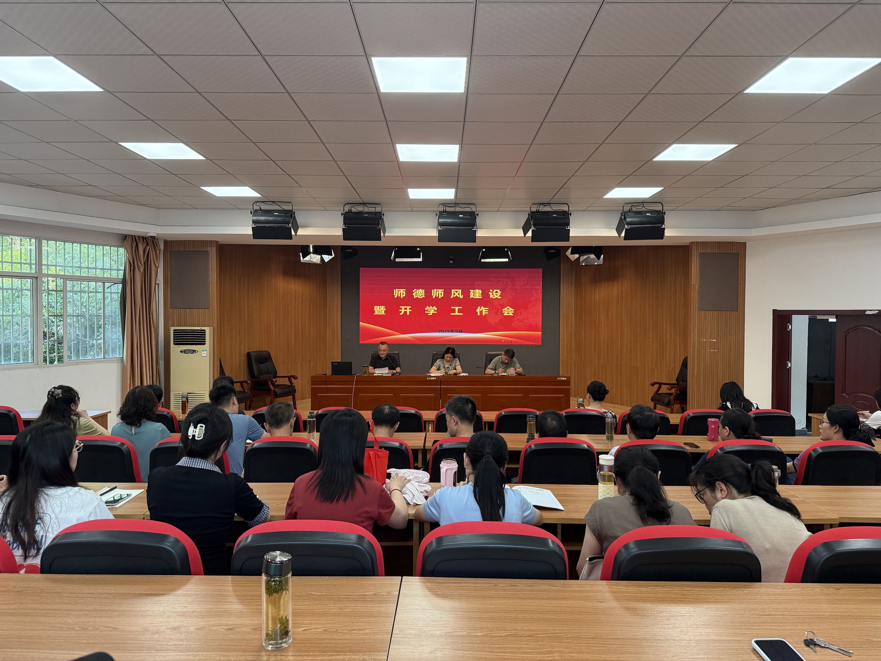2025年9月3日上午,我校召开师德师风建设暨开学工作会。校党委书记陈庆玲主持会议并讲话,党委副书记、校长王佩捷,党委委员、副校长王付清以及全体教职工参加了会议。