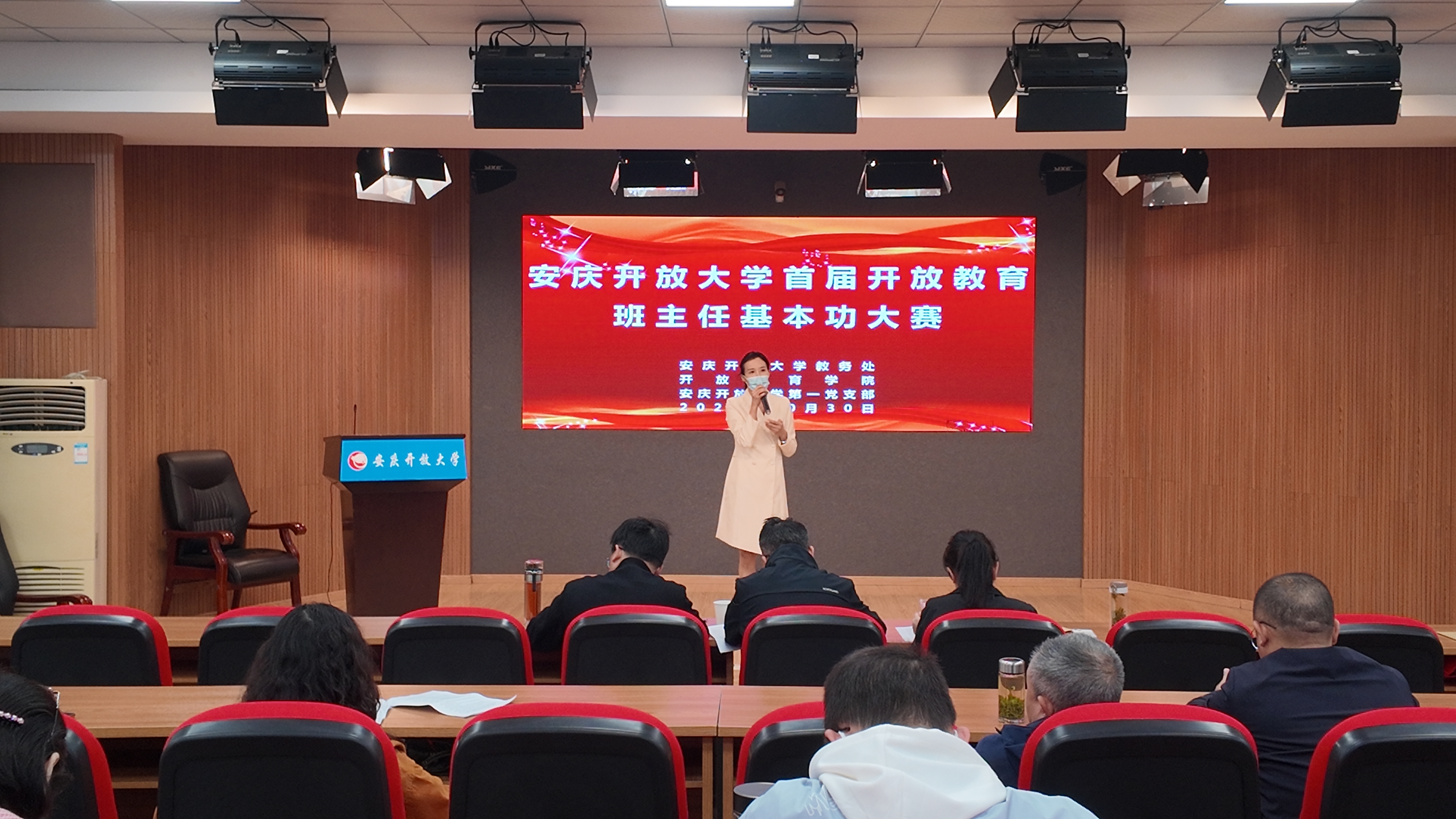 为深入推进“时代新人铸魂工程”,加强班主任队伍建设,提升思想政治教育工作质量,10月30日,由教务处主办的安庆开放大学首届开放教育班主任基本功大赛顺利举行。来自全市办学体系内的17名优秀班主任同台竞技,全方位展现了开放教育班主任的专业素养与育人风采。校党委副书记、校长王佩捷现场指导,市县开放大学班主任代表观摩了比赛。