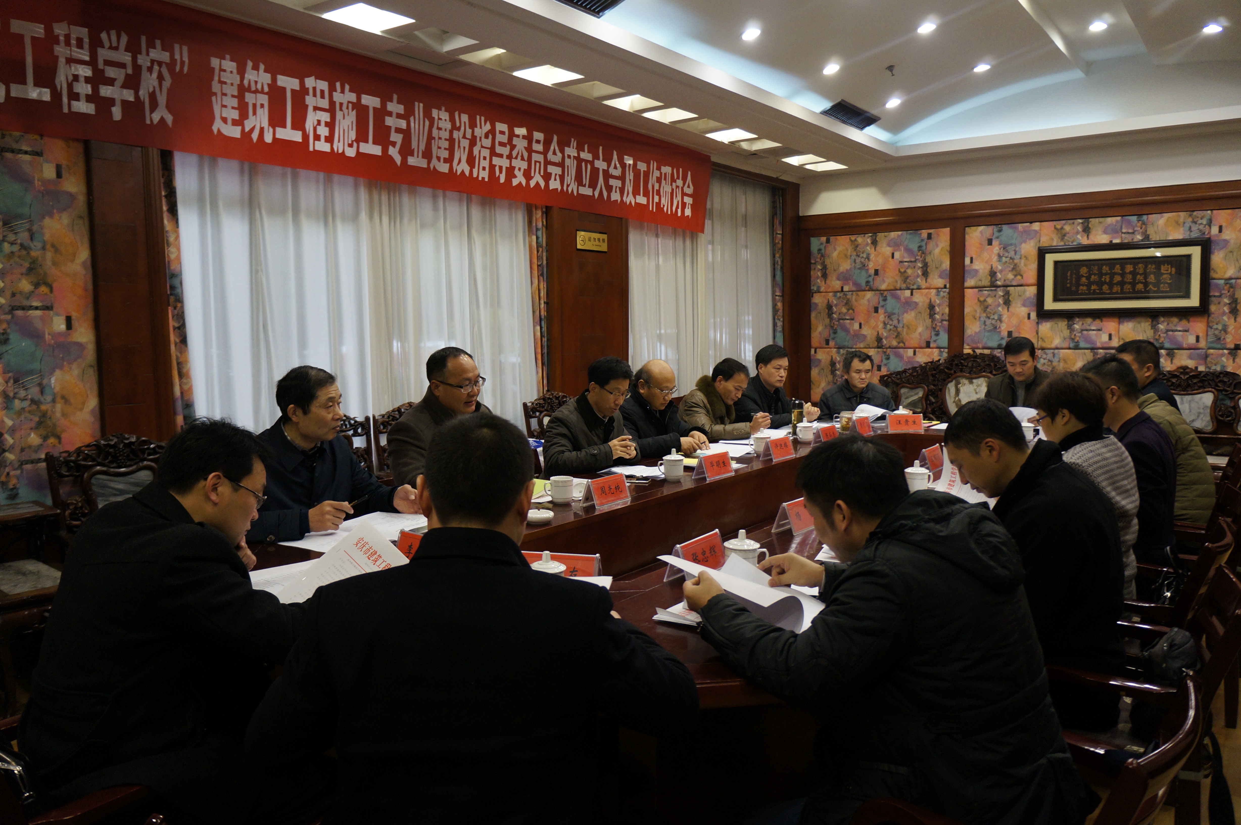 1210日“安庆市建筑工程学校”建筑工程施工专业建设指导委员会成立大会暨工作研讨会在安庆皖源贵宾楼会议厅隆重举行。来自安庆市第一建筑安装工程公司、安庆职业技术学院等单位及校内的13位专家和校领导参加会议。会议由副校长许迪楼主持。