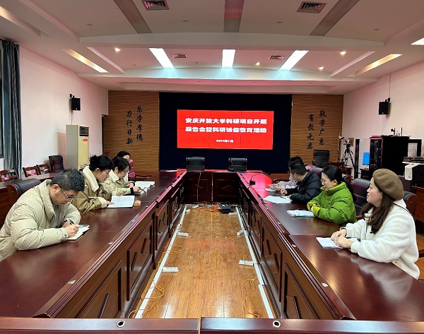 近年来,学术诚信和学风道德建设蔚然成风。2023年安庆开放大学科研学术成果颇丰,获批安徽开放大学科研重点项目两项、青年项目一项,教师公开发表学术论文14篇。为切实引导广大教师增强科研诚信意识、维护学术尊严、恪守学术道德,巩固我校既往在学风建设方面的工作成果,根据《安徽开放大学科研诚信管理办法(试行)》文件精神,2024年3月4日上午,我校教务处举办校级科研项目开题报告会暨“树立学术诚信标杆 营造清风正气科研氛围”的科研诚信教育活动,教务处相关负责人、评议专家、获批2023年安徽开大科研项目的主持人、项目组成员及部分青年教师参加了此次活动,会议由教务处李淑芬副主任主持。