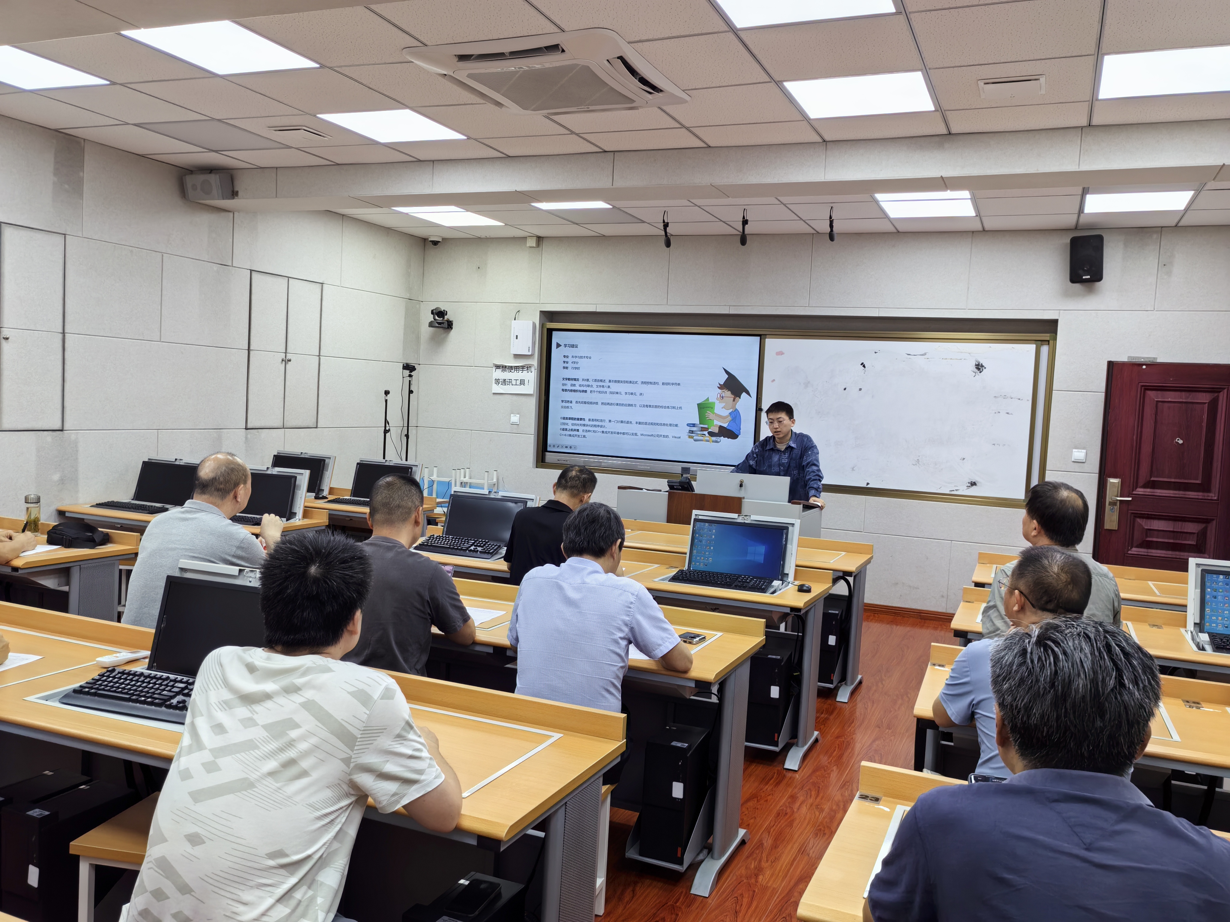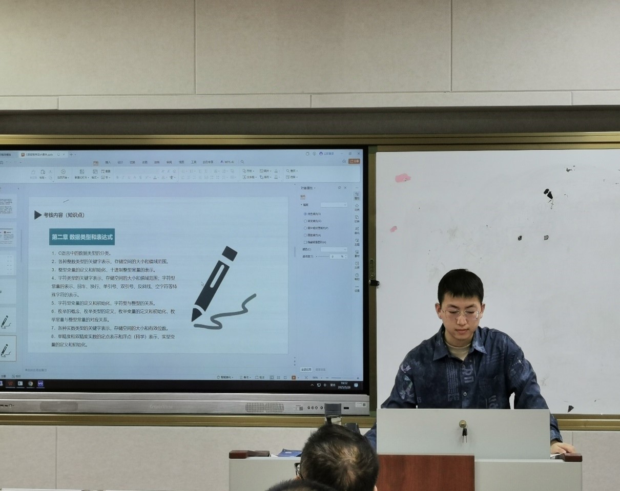 为充分发挥教学督导在教学质量提升中的引领作用,助力新进教师站稳讲台、精进教学能力,我校教务处组织开展了新进教师公开课活动。5月28日晚,教务处相关负责人、理综教研组教师共同听取了谢东来老师的《C语言程序设计》公开课,并参与了评课活动。课堂上,谢东来老师梳理了《C语言程序设计》中的核心知识,包括 C语言概述、数据类型和表达式、流程控制语句、数组和字符串、指针、函数、结构与联合、文件等,并就形成性考核中的试题做有针对性地讲解,为学员后续的自主课程学习与考核奠定基础。