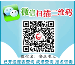 扫描二维码关注“安庆电大”后,如下图所示,打开公众号下方“学历教育”菜单“成绩查询”即可。
