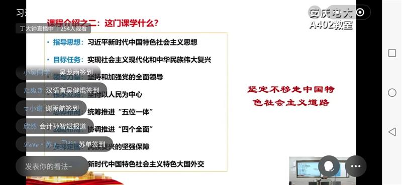 这是继2020年春季我校开设网络直播课以来的第四期“校长讲思政”课堂,学员在线听课人数不断攀升,线上线下效果反馈良好。通过网络直播,学员不仅学习了思政理论知识,更树立了学好专业知识、实现“中国梦”的远大理想。