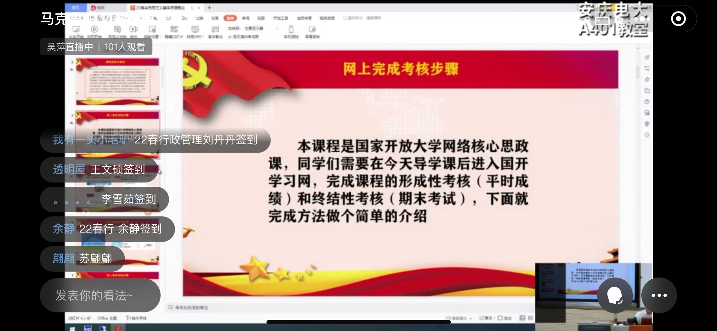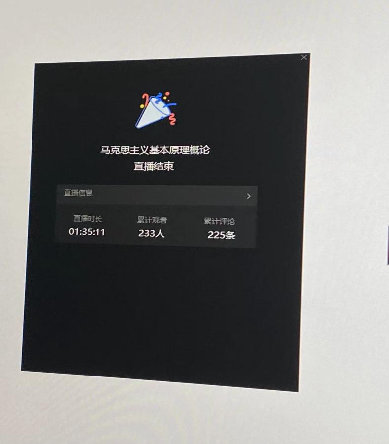 据统计,《马克思主义基本原理概论》、《习近平新时代中国特色社会主义思想概论》,《形势与政策》的课堂在线听课学员数均达200以上,部分课程在线人数高达300以上。学员们上课热情高涨,互动积极,本季“校长讲思政”系列网络直播课收效显著。(撰稿人:金鑫  审稿人:王佩捷)