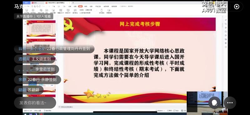 2022春季学期我校特色课程系列“校长讲思政”已于5月29日顺利完成线上开课。该系列涉及包括《马克思主义基本原理概论》、《习近平新时代中国特色社会主义思想概论》在内的8门思政类课程,全面对接我校开放教育新老学员的教学计划,坚持做到“价值性和知识性相统一,寓价值观引导于知识传授之中”。我校党委书记、校长曹劲松走上讲台,亲自向学生授课,进一步体现出思政课程在教学工作中的重要性。