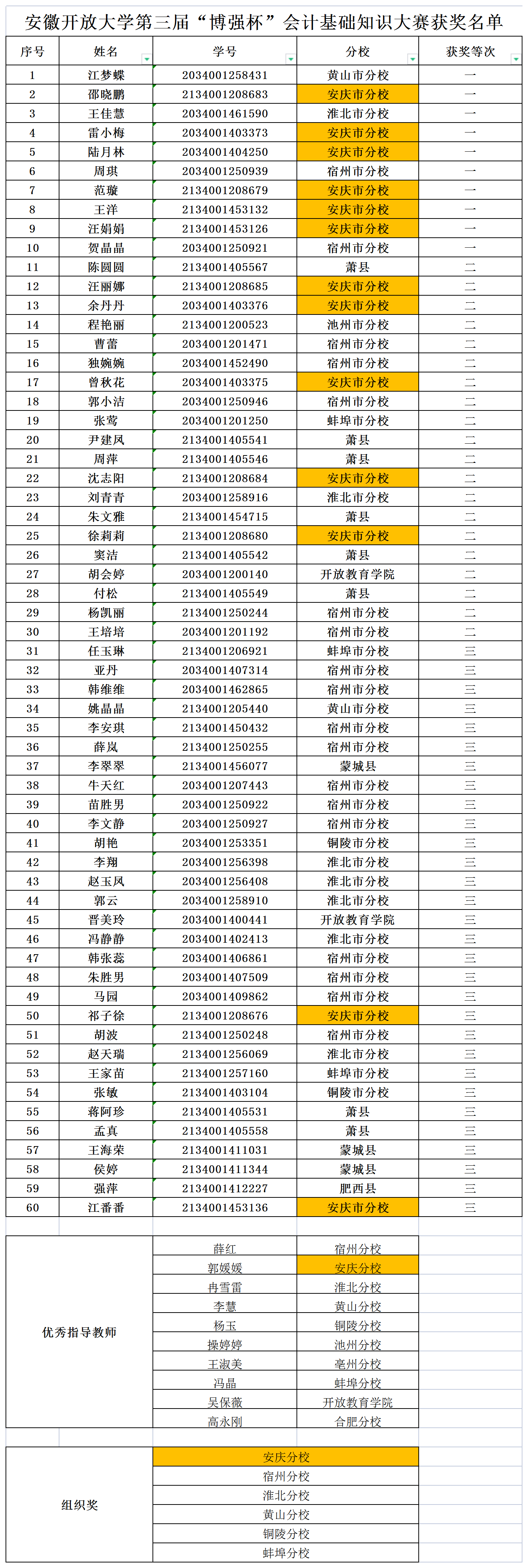 我校师生在安徽开放大学第三届“博强杯”会计基础知识大赛再创佳绩