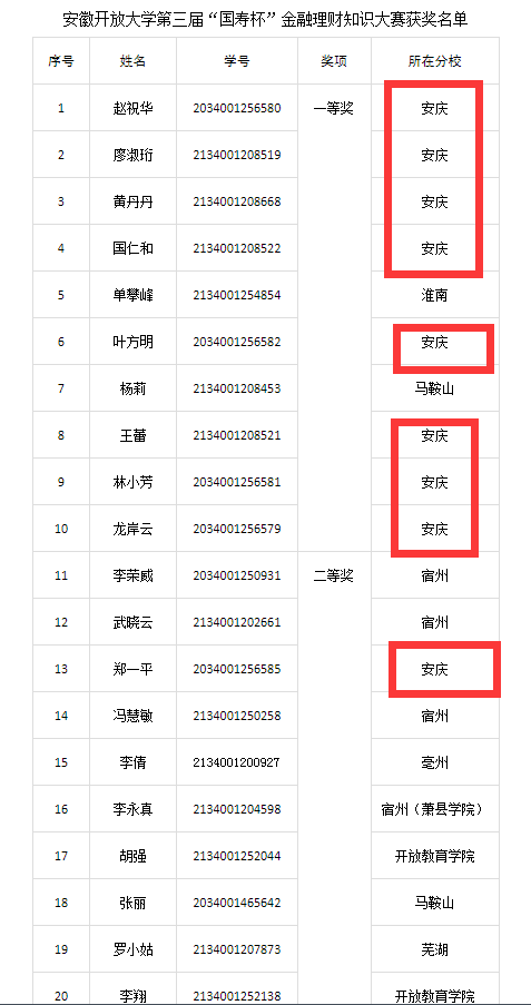 安徽开放大学第三届“国寿杯”金融理财知识大赛已于6月30日落下帷幕,安庆分校学员历经初赛和决赛的激烈角逐,在全省办学体系共计1648名学生中杀出重围,再次勇创佳绩。