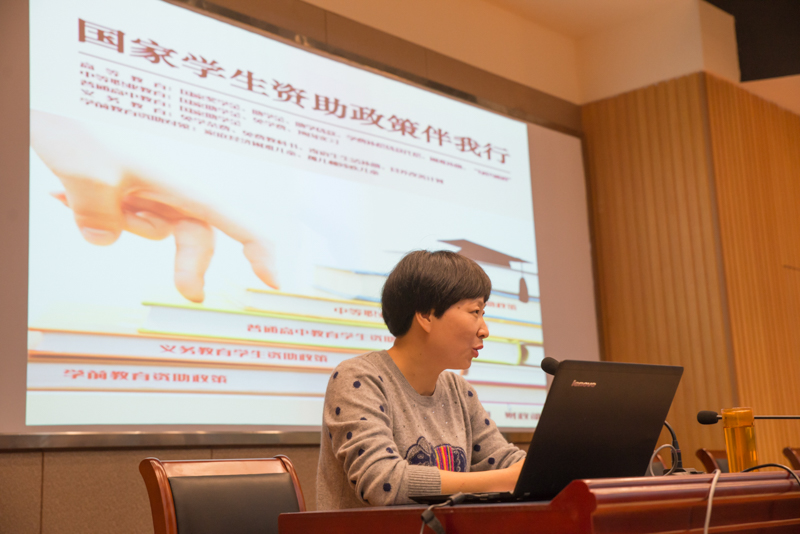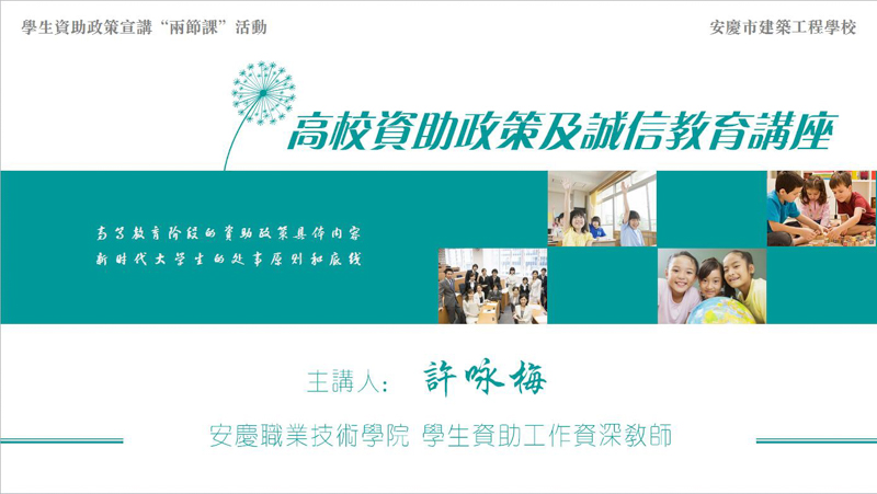 为进一步做好学生资助政策宣传工作,根据省教育厅学生资助管理中心《关于做好2016年学生资助政策宣讲“两节课”相关工作的通知》(皖教助函【2016】23号) 精神,各校应给新生和毕业生各上一节学生资助政策宣讲课。我校继中职新生入学教育大会上宣传中职资助政策后,于10月21日下午在C楼建筑装饰展示厅举办了“高校资助政策及诚信教育”讲座,为全体毕业班学生宣讲了下一阶段资助政策。